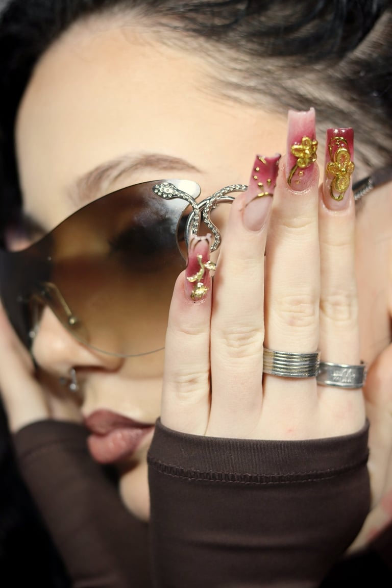 Un maquillage Glam, une pose d'ongles avec Nail art travaillé et un mini shooting photo pour un look de Star.